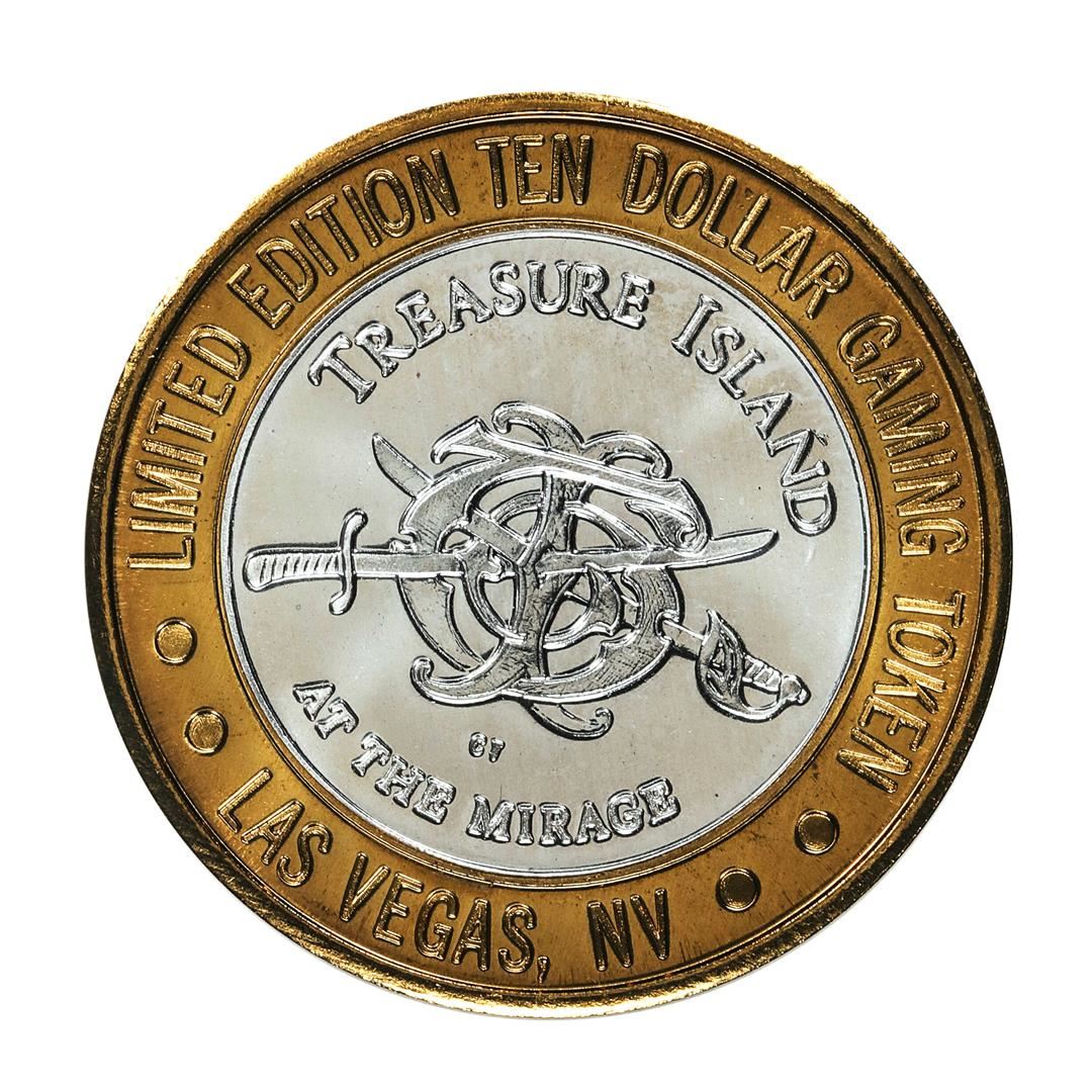 One .999 Silver Treasure Island Las Vegas $10 Casino Gaming Token Limited Edition.