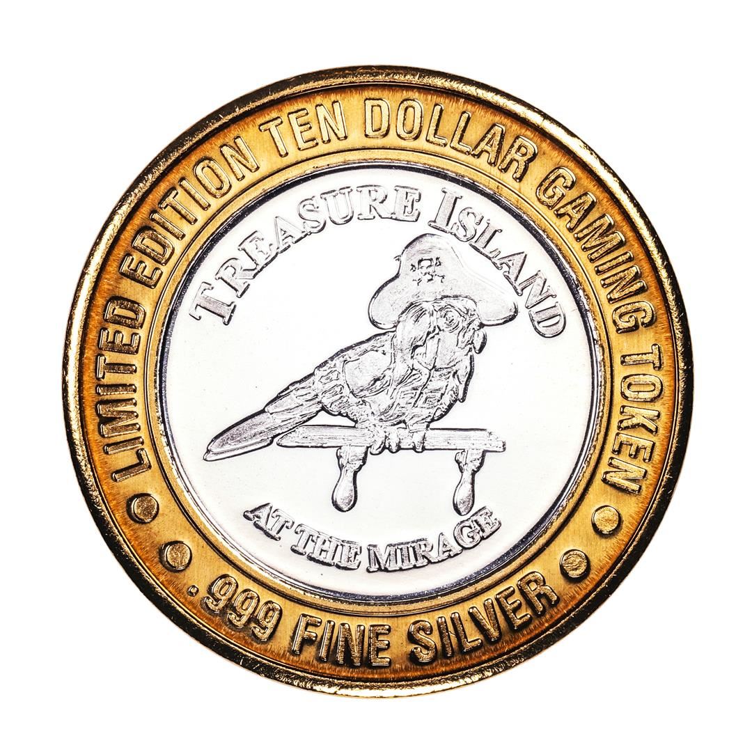 One .999 Silver Treasure Island Las Vegas, Nevada $10 Casino Limited Edition Gaming Token.