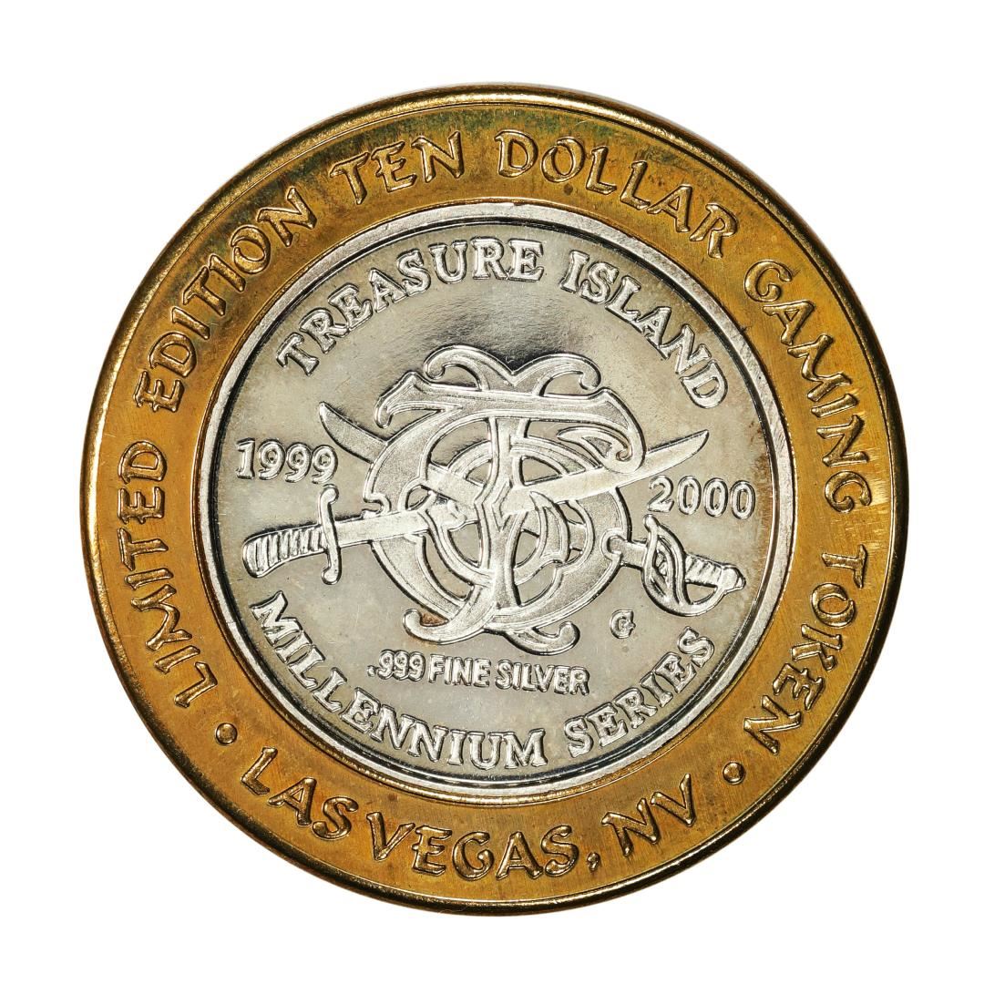 One .999 Silver Treasure Island Las Vegas, Nevada $10 Casino Limited Edition Gaming Token.