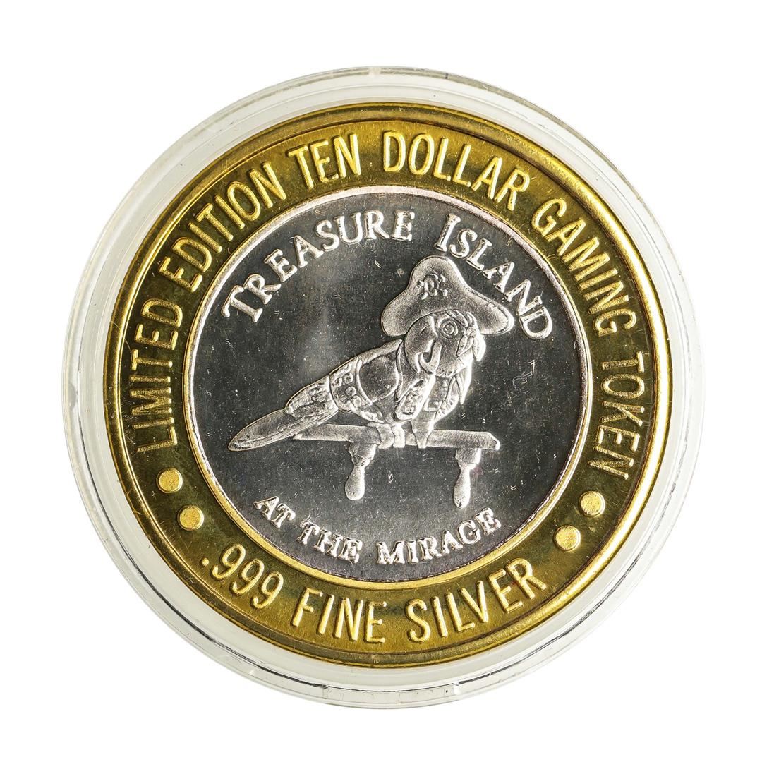 One .999 Silver Treasure Island Las Vegas, Nevada $10 Casino Limited Edition Gaming Token.