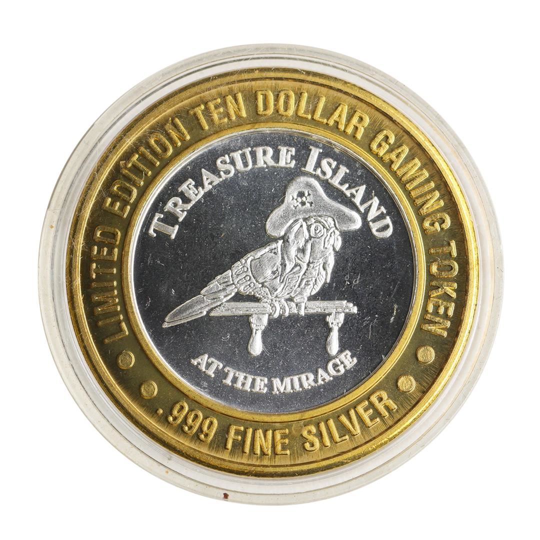 One .999 Silver Treasure Island Las Vegas, Nevada $10 Casino Limited Edition Gaming Token.