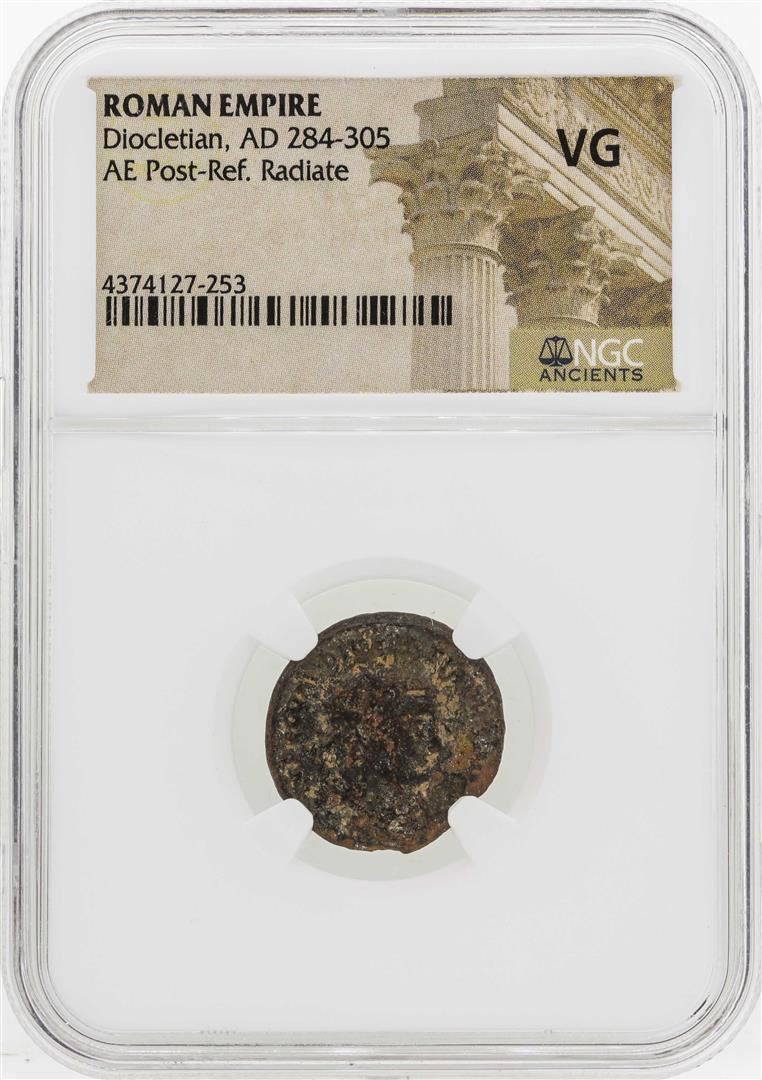 One AD 284-305 Roman Empire Diocletian AE Post -Ref Radiate NGC VG. NGC Certified.
