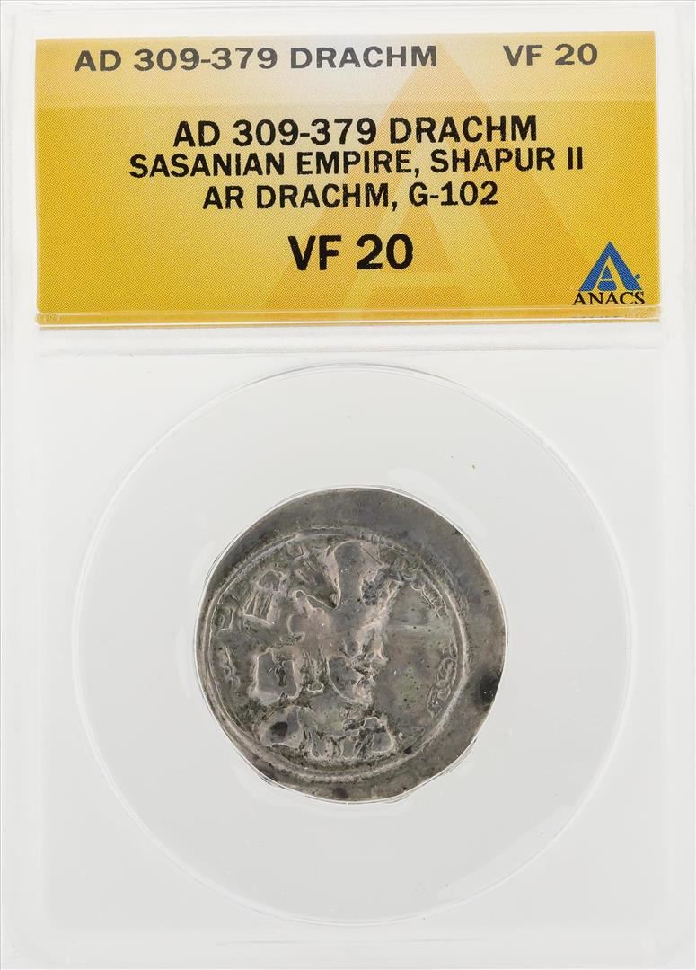AD 309-379 Drachm Sasanian Empire Shapur II AR Drachm G-102 Coin ANACS VF20