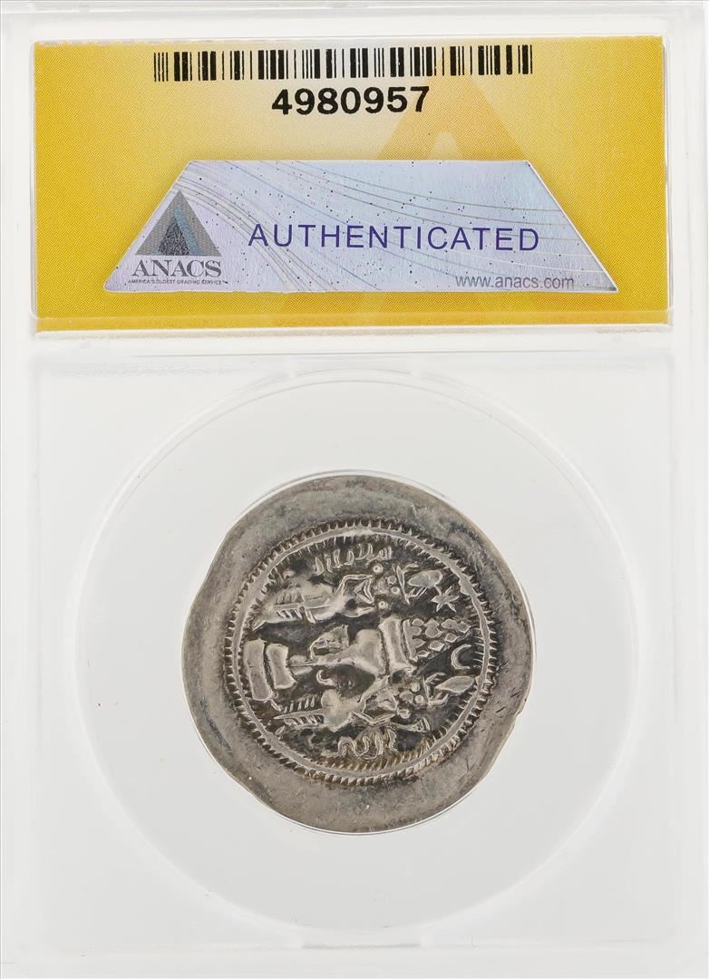 One AD 531-579 Drachm Sasanian Khushro I AR Drachm Treasury Mint G-196 Coin ANACS VF30. ANACS Certified.
