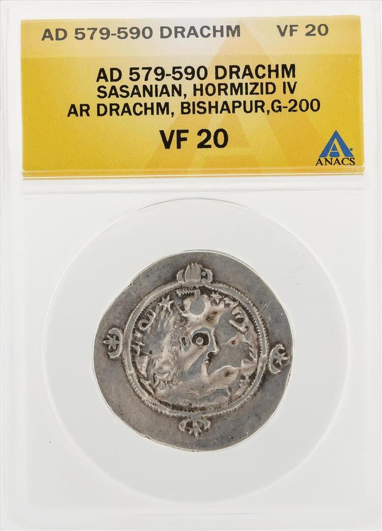 AD 579-590 Drachm Sasanian Hormizid IV AR Drachm Bishapur G-200 Coin ANACS VF20