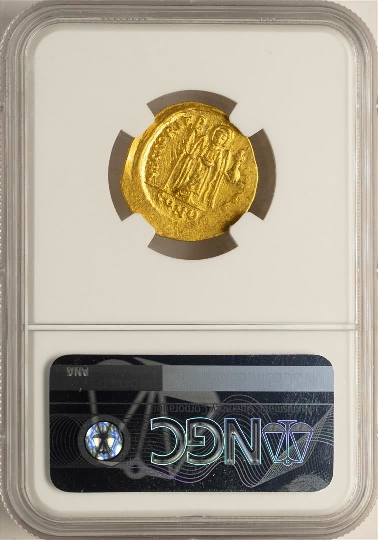 One AD 602-610 Phocas Byzantine Empire Solidus Ancient Gold Coin NGC AU. NGC Certified.