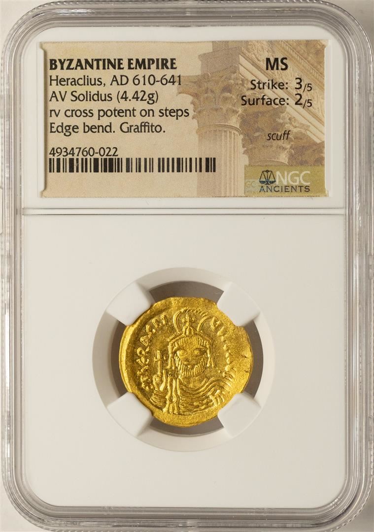 One AD 602-610 Phocas Byzantine Empire Solidus Ancient Gold Coin NGC MS. NGC Certified.
