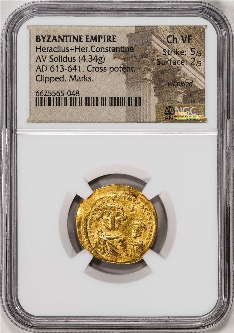 AD 613-641 Byzantine Empire Heraclius + Her Constantine AV Solidus Gold Coin NGC Ch VF