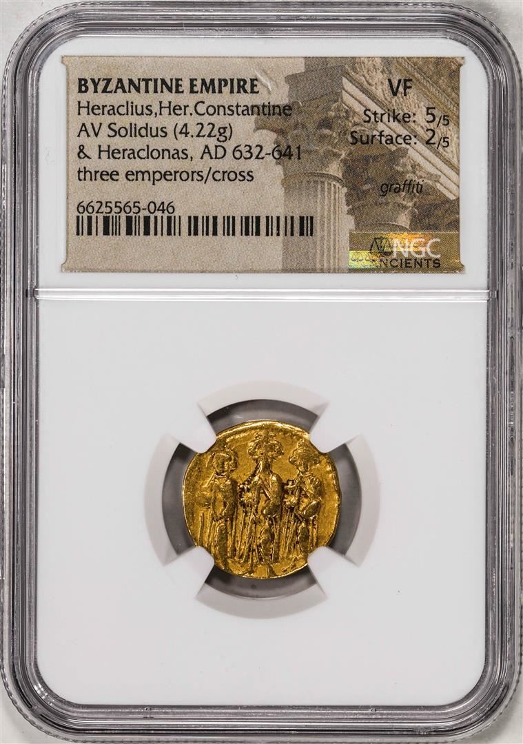 AD 632-641 Byzantine Empire Heraclius Her Constantine AV Solidus Gold Coin NGC Ch VF