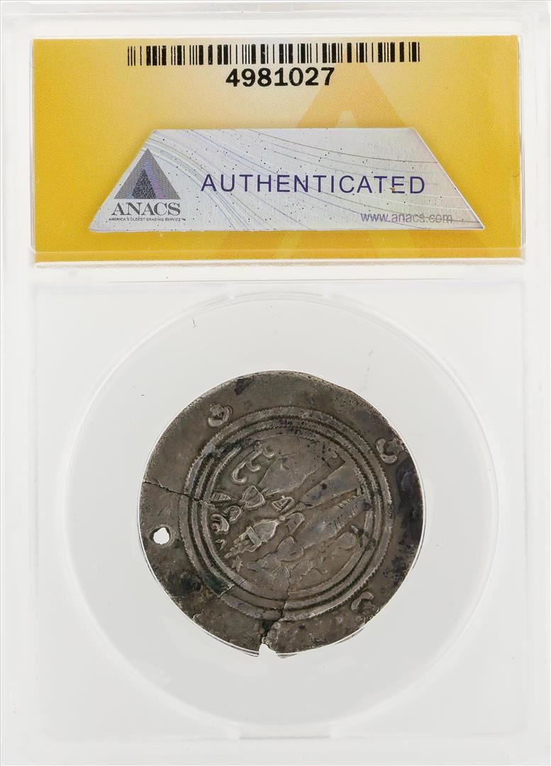 One AD 716-727 Drachm Eastern Sistan Anonymous AR Drachm SK Sijistan Holed Coin ANACS VF30. ANACS Certified.