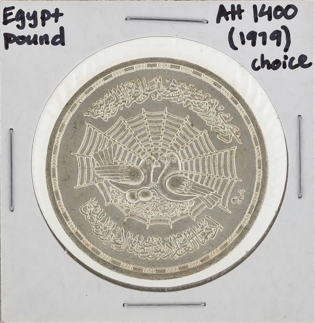 One AH 1400 (1979) Egypt Pound Silver Coin CU.