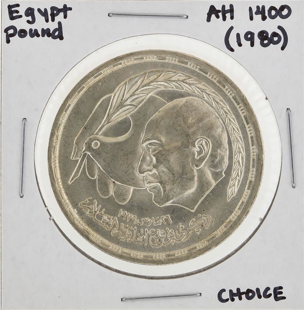 One AH 1400 (1980) Egypt Pound Silver Coin CU.