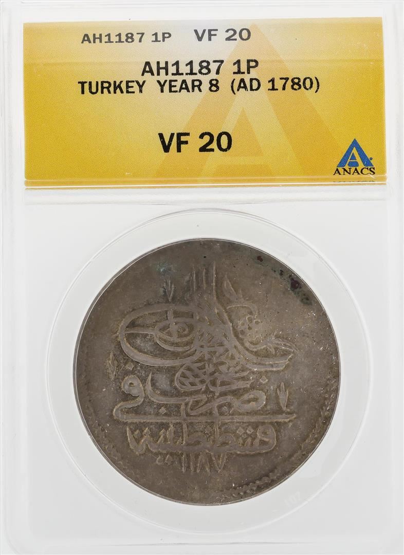 One AH1187 1 Para Turkey Year 8 AD1780 Coin ANACS VF20. ANACS Certified.