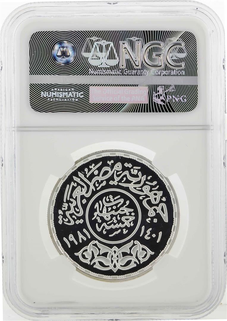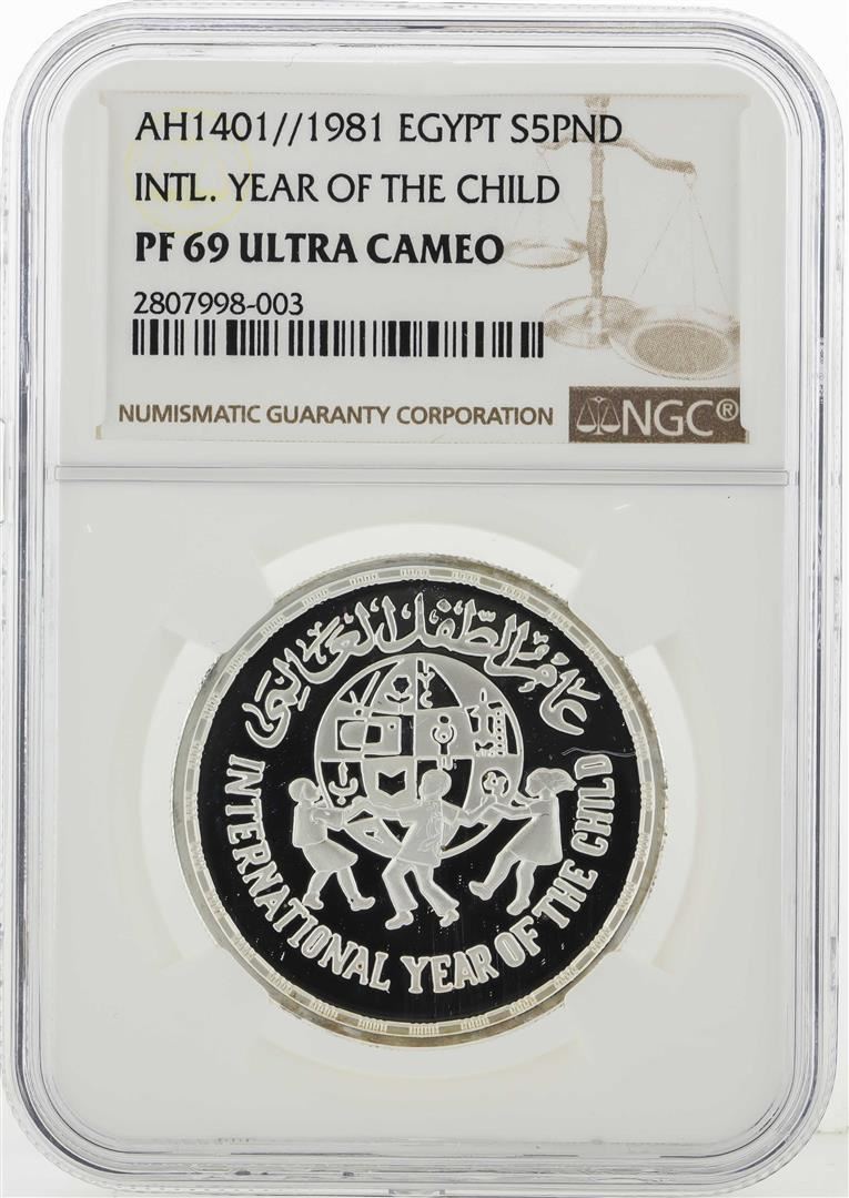 One AH1401/1981 Egypt 5 Pounds Year of the Child Silver Coin NGC PF69 Ultra Cameo. NGC Certified.