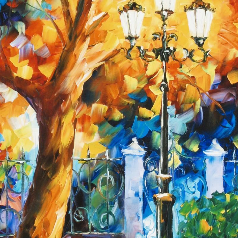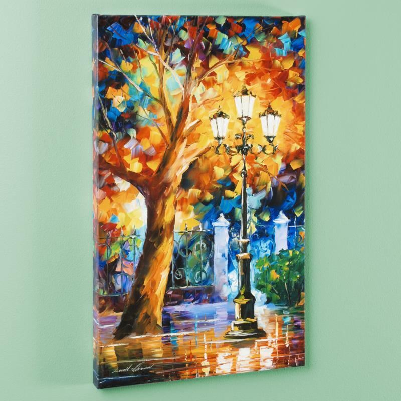 Leonid Afremov's (1955-2019) masterful use of color and texture make his paintings unique collectibles that are sure to brighten any wall. "Romantic Aura" is a limited edition giclee on canvas. The piece is numbered and bears the artist's authorized signature. This piece comes gallery wrapped. Includes Letter of Authenticity. Measures approx. 16" x 27.5" (image). This item requires special handling and may have a longer than usual turnaround.