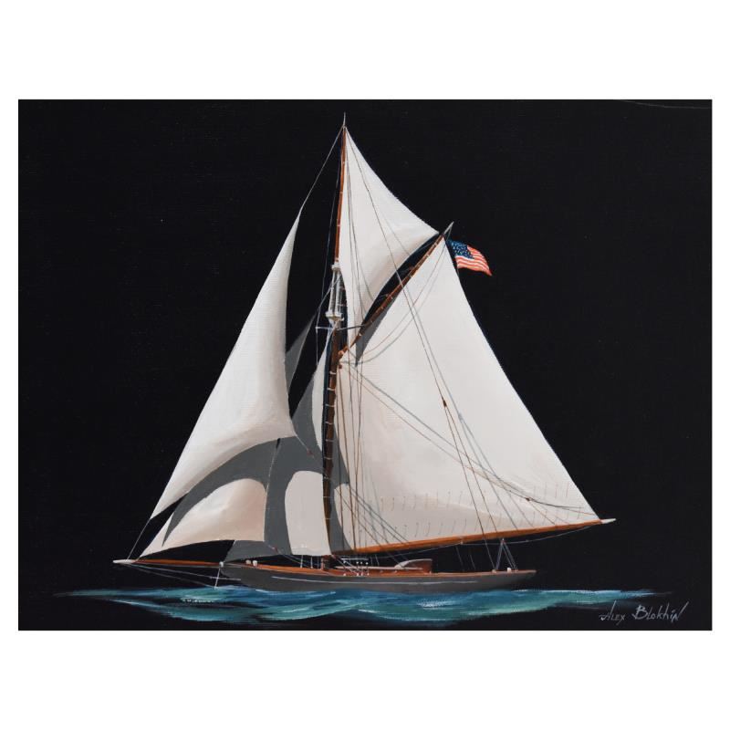 Alex Blokhin Original "One Masted Yacht" Original Oil Painting On Canvas