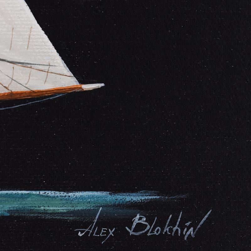 "One Masted Yacht" is an original oil painting on canvas by Alex Blokhin, hand signed by the artist. Includes Letter of Authenticity. Measures approx. 17" x 13" (image).