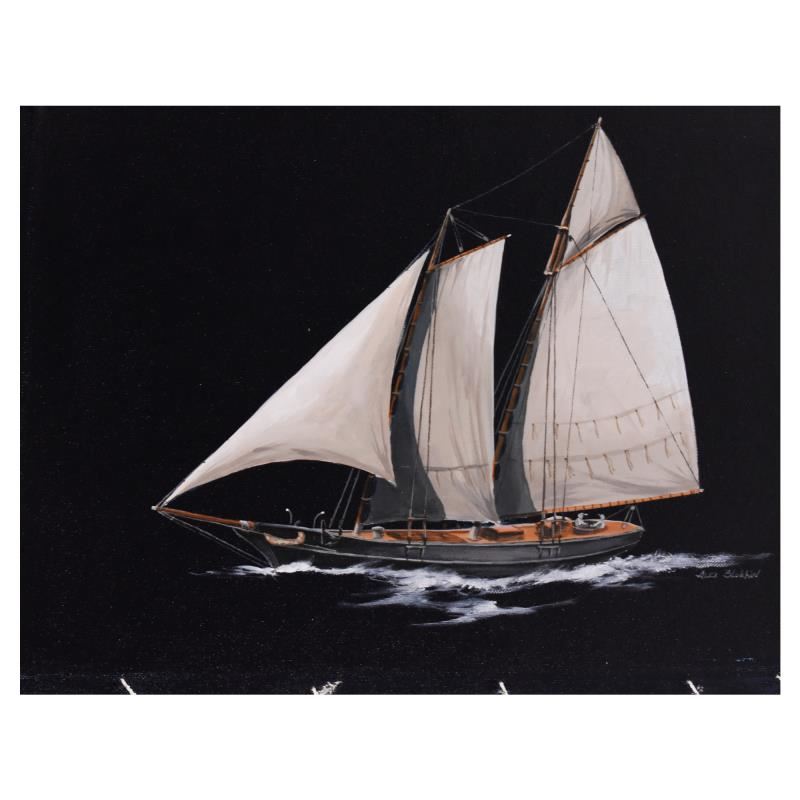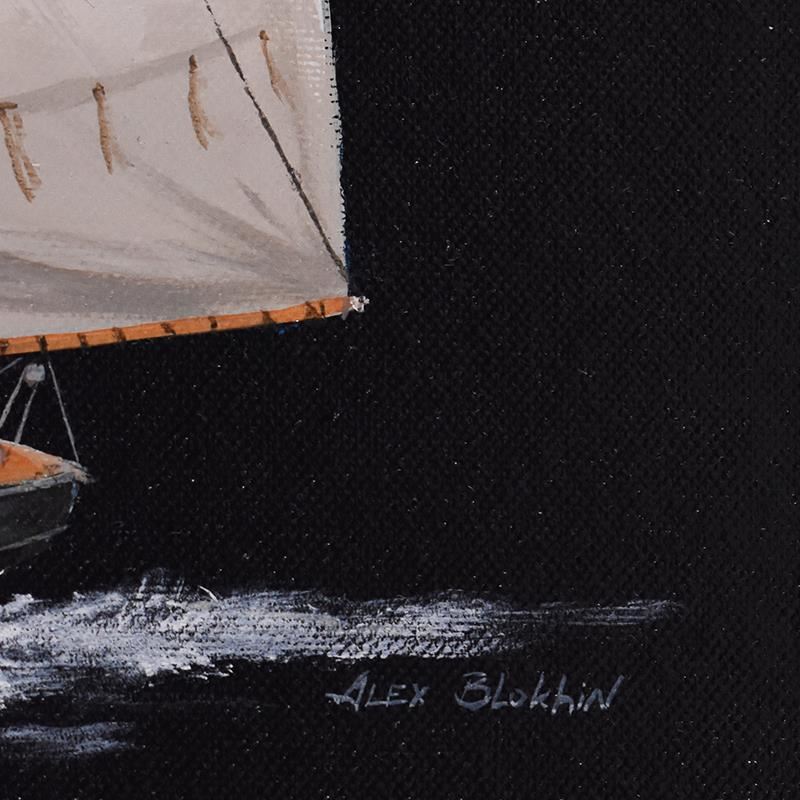 "Yacht Schooner, America Cup" is an original oil painting on canvas by Alex Blokhin, hand signed by the artist. Includes Letter of Authenticity. Measures approx. 17" x 13" (image).