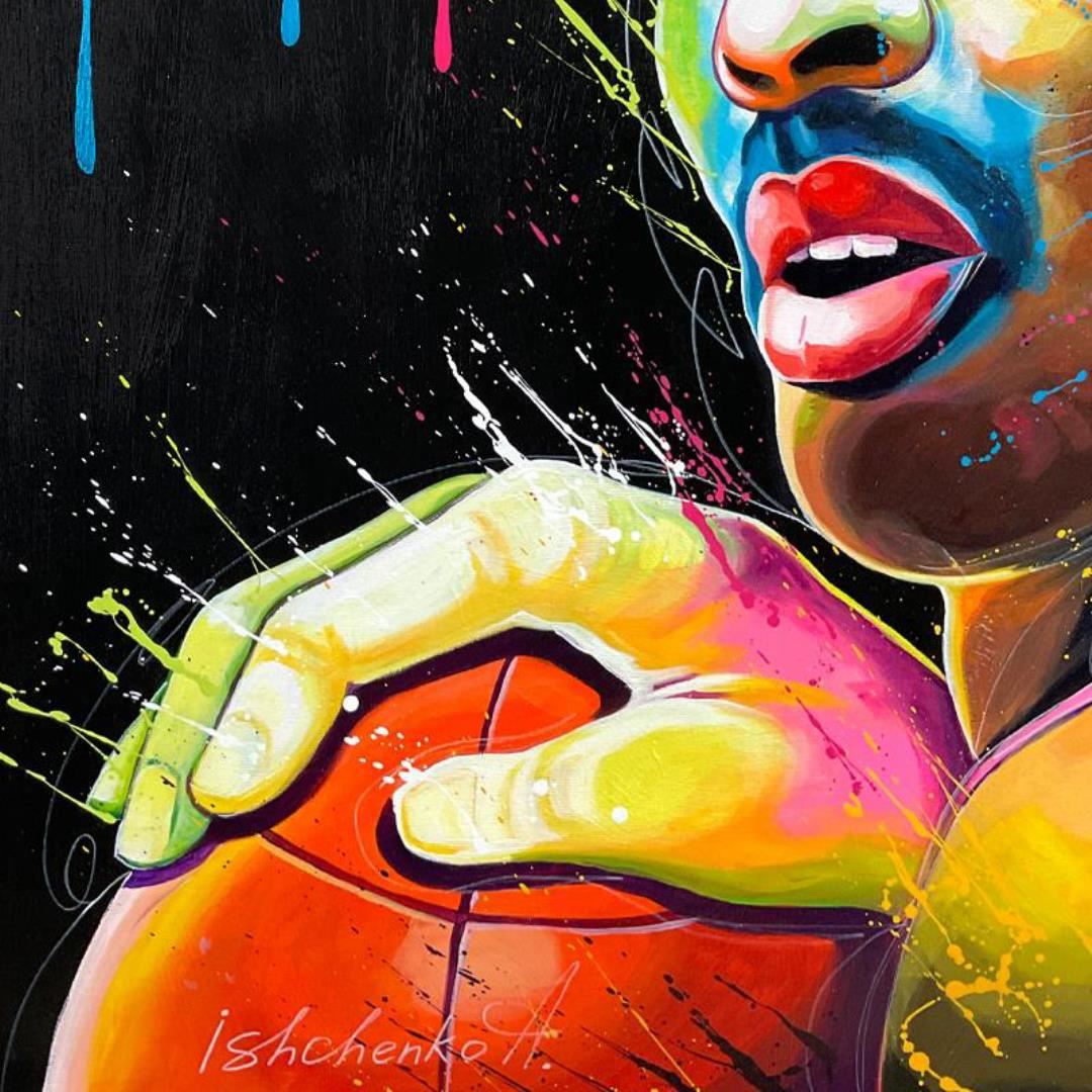 "Kobe" is an original acrylic painting on canvas by Alexander Ishchenko, hand signed by the artist. Includes Letter of Authenticity. Measures approx. 36" x 36" (image).