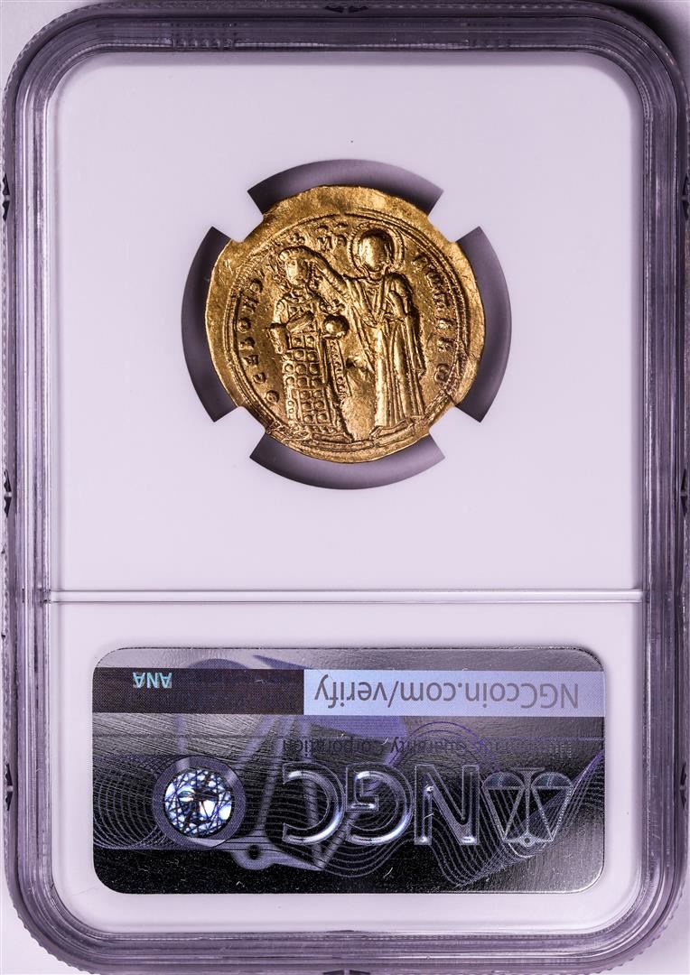 One Ancient Byzantine Empire 1028-1034 AD Histamenon Nomisma Romanus III Gold Coin NGC XF. NGC Certified.