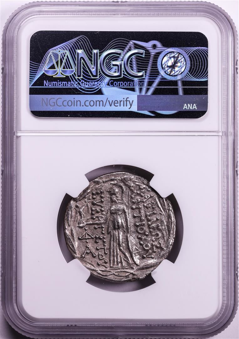 One Ancient Seleucid Kingdom 138-129 BC Antiochus VII Tetradrachm Cappadocia Coin NGC XF. NGC Certified.