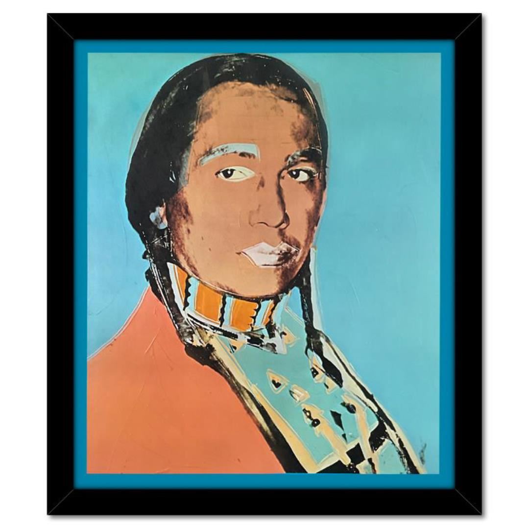 "The American Indian Series (Red 1976 & Blue 1977)" is a 2 piece set of vintage lithographs by Andy Warhol (1928-1987) cropped from the Ace Gallery posters. This set comes custom framed. Includes Letter of Authenticity. Each Piece measures approx. 28.5" x 33.5" (frame), 25" x 30" (image). Due to the age of the piece there may be some waviness and/or minor wrinkles on the paper.