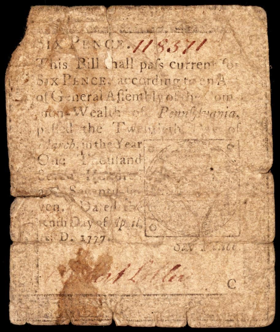 April 10, 1777 Pennsylvania Six Pence Colonial Currency Note
