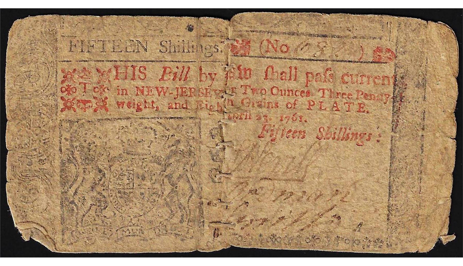 April 23, 1761 New Jersey 15 Shillings Colonial Currency Note