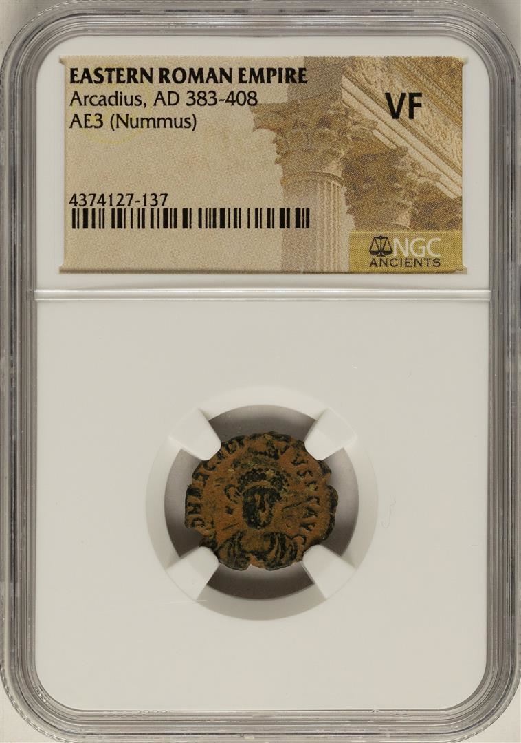 Arcadius, 383-408 AD Ancient Eastern Roman Empire Coin NGC VF