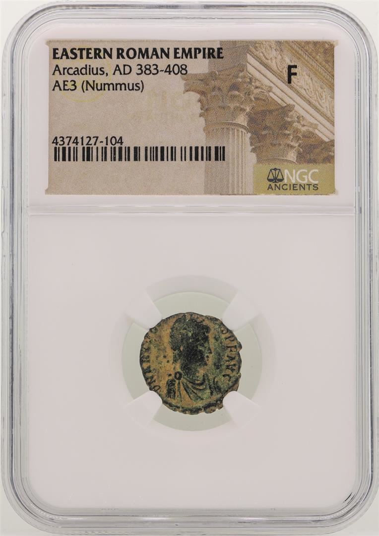 One Arcadius 383-408 AD Ancient Eastern Roman Empire NGC F. NGC Certified.
