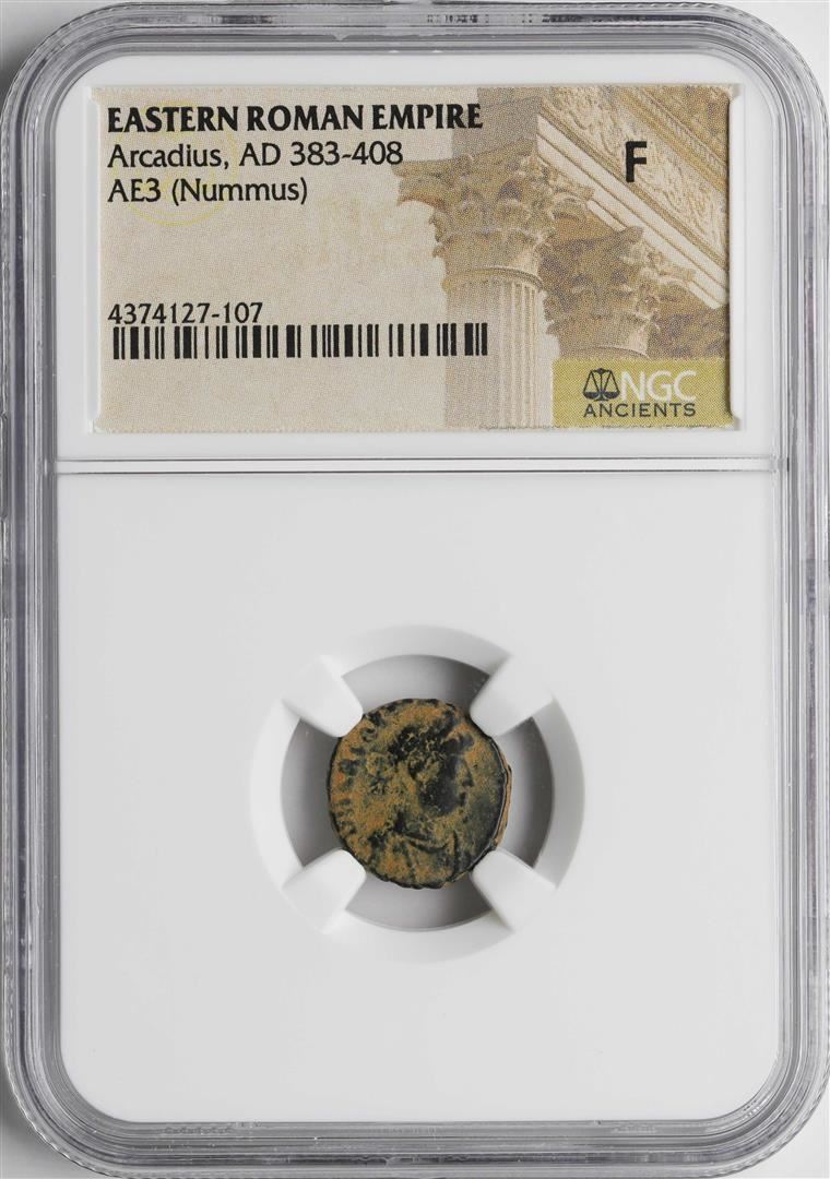 One Arcadius 383-408 AD Ancient Eastern Roman Empire NGC F. NGC Certified.