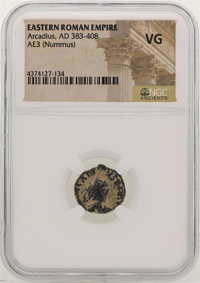 One Arcadius 383-408 AD Ancient Eastern Roman Empire NGC VG. NGC Certified.
