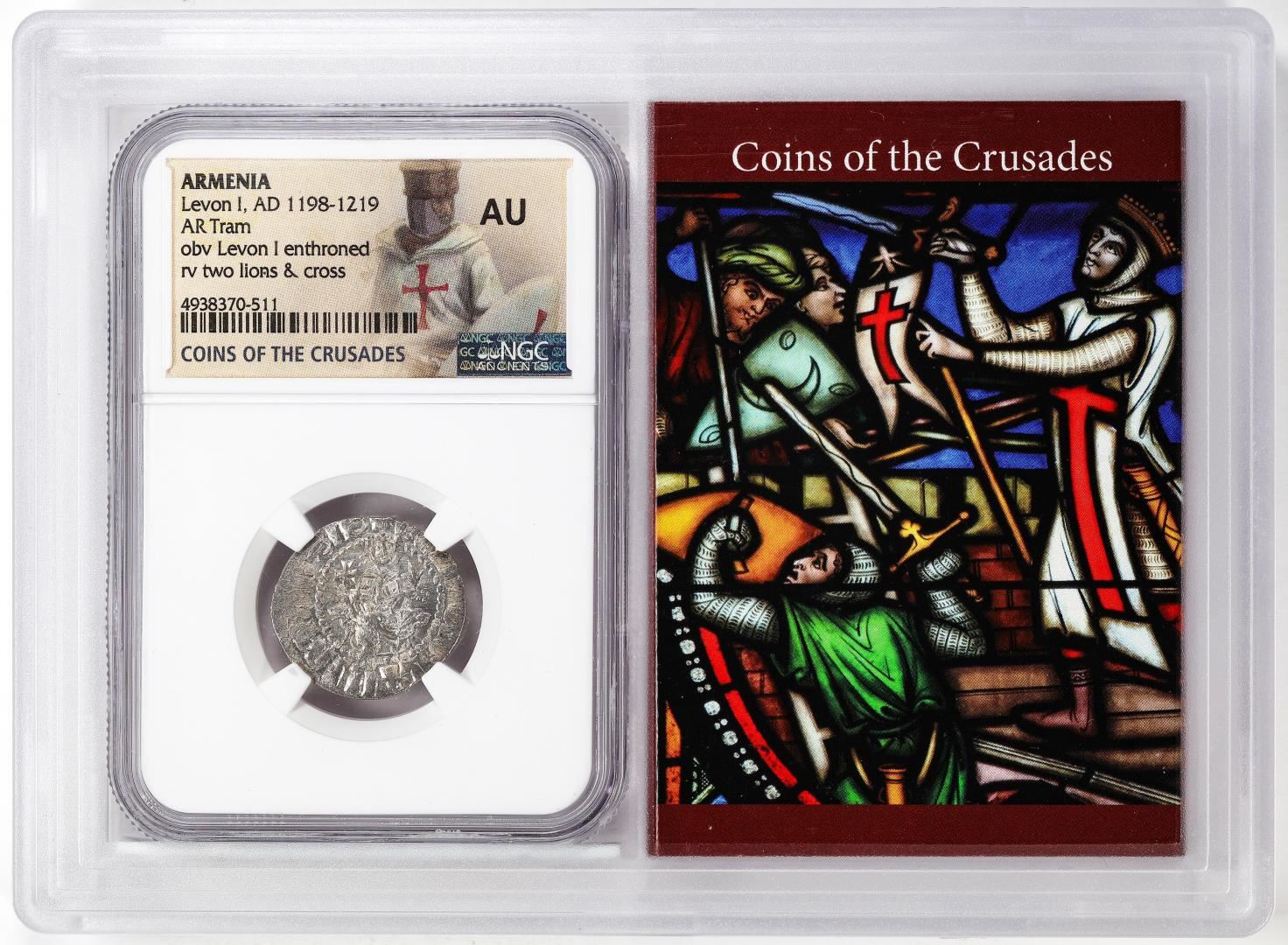 Armenia 1198-1219 AD Levon I AR Tram Crusades Ancient Coin NGC AU Story Box