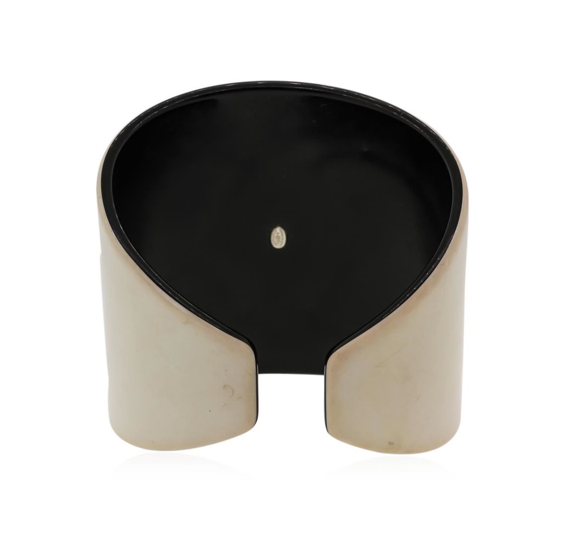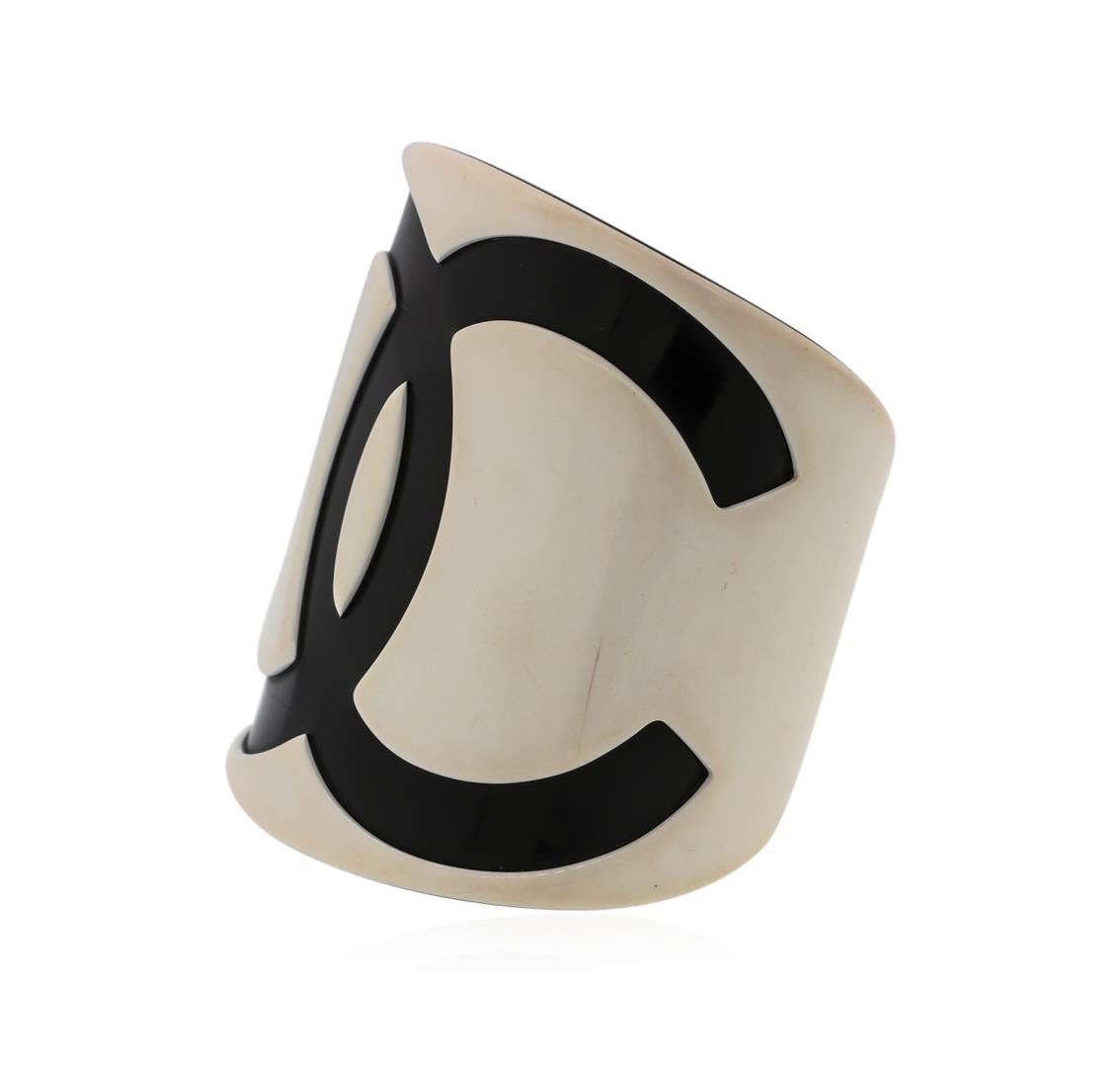 Authentic Chanel Black and White Logo Resin Cuff Bracelet