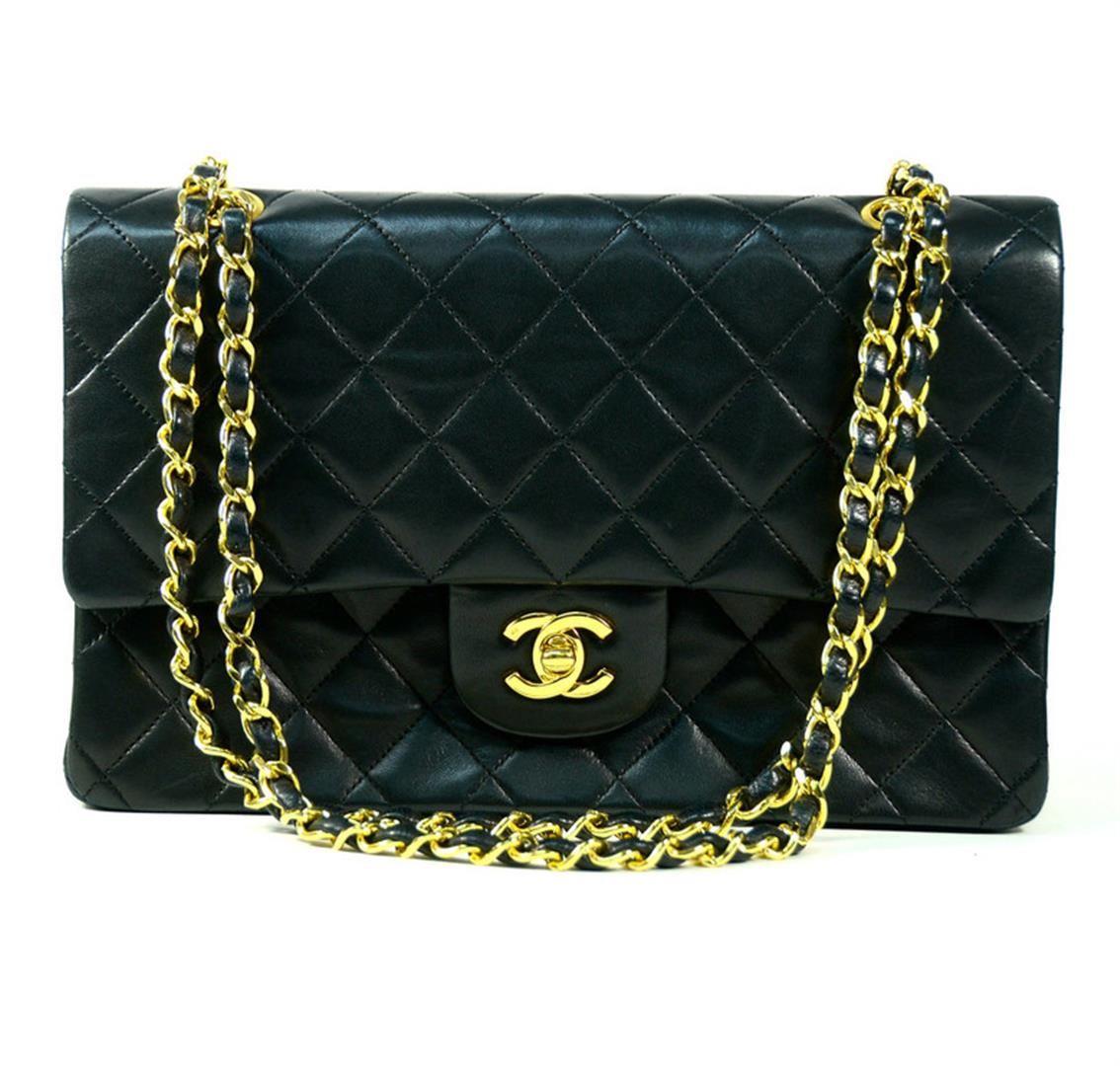 Gorgeous pre-loved Authentic Chanel Black Quilted Lambskin Leather Jumbo Classic Double Flap Bag. The quilted leather is buttery soft and features a goldtone turnlock CC closure and double flap interior. The versatile leather strap chain can be worn on the shoulder or lengthened to wear across the body. An elegant and timeless piece to add to any collection. The exterior leather shows some visible wear, some light scuffing throughout. The goldtone hardware has light surface scratches. The main compartment is clean with some scuffing but overall is in good condition.
