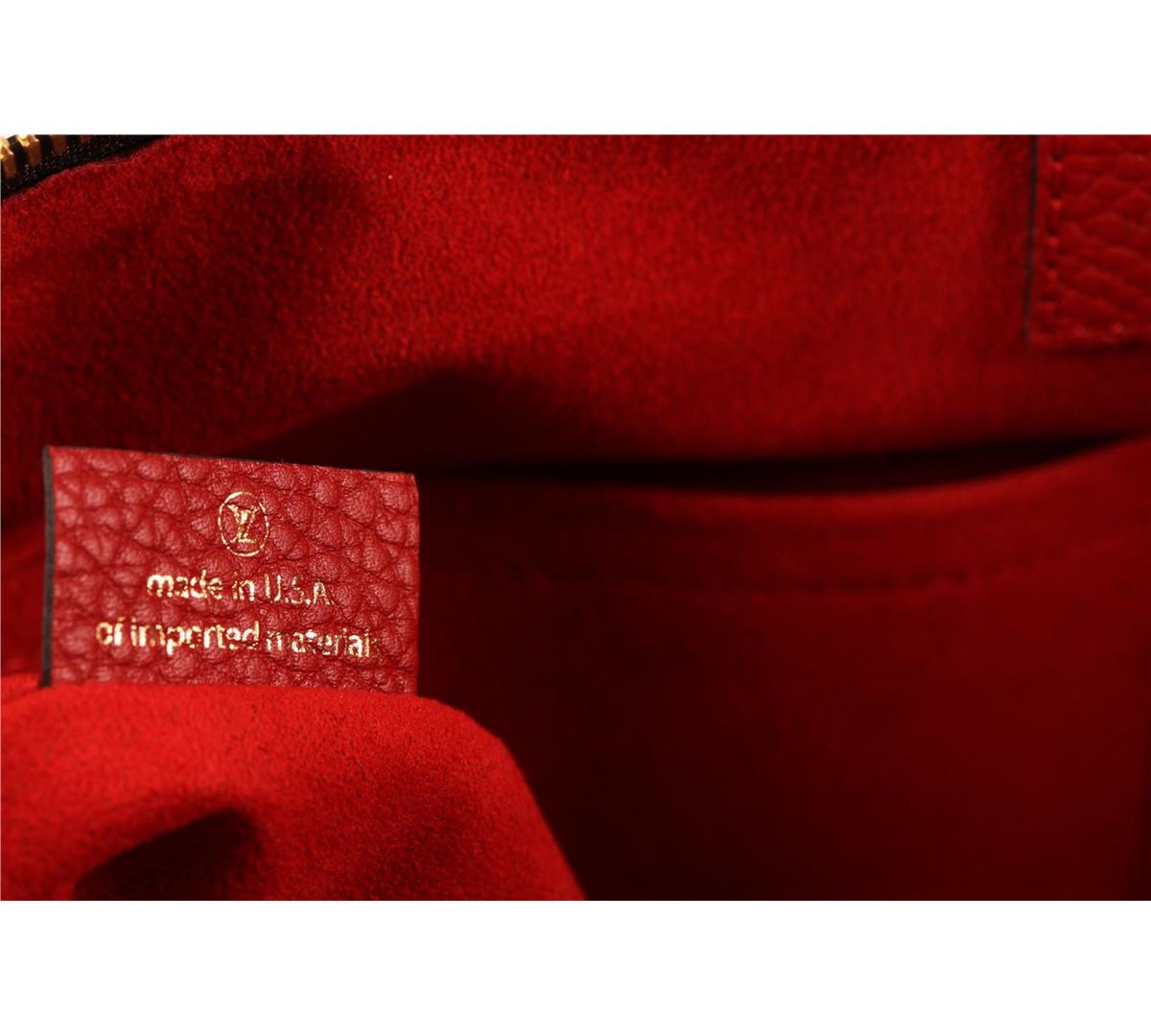 100% Authentic Louis Vuitton Monogram Red Cerise Estrela NM Bag. This new in box bag is an instant classic! The Estrela NM is great way to add a bit of Louis Vuitton luxury to your everyday with its iconic Louis Vuitton brown monogram canvas and timeless shape. Trimmed in vibrant red cowhide leather, this bag stands out in all the right ways! Interior is lined with matching microfiber lining and boasts one large open pocket and two smaller open pockets opposite. Comes complete with removable and adjustable cross-body strap, matching pochette with Louis Vuitton padlock and keys, original dust bag, box with corded ribbon, shopping bag and card. Condition is in great pre-loved condition. Approximate dimensions: length 18.1" x width 6.7" x height 11".