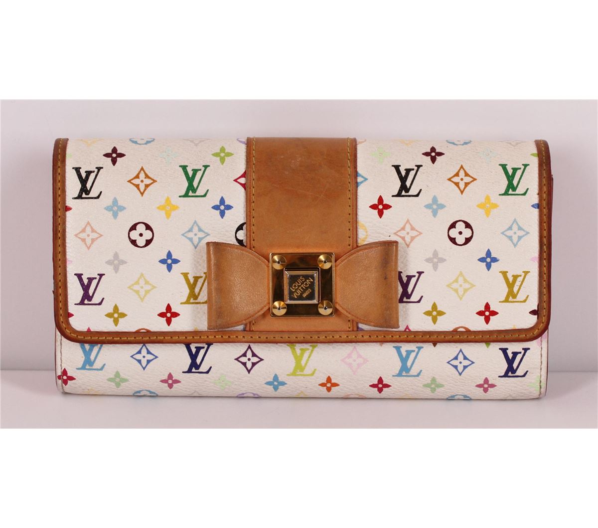 Authentic Louis Vuitton White Multicolor Monogram Bow Sarah Wallet