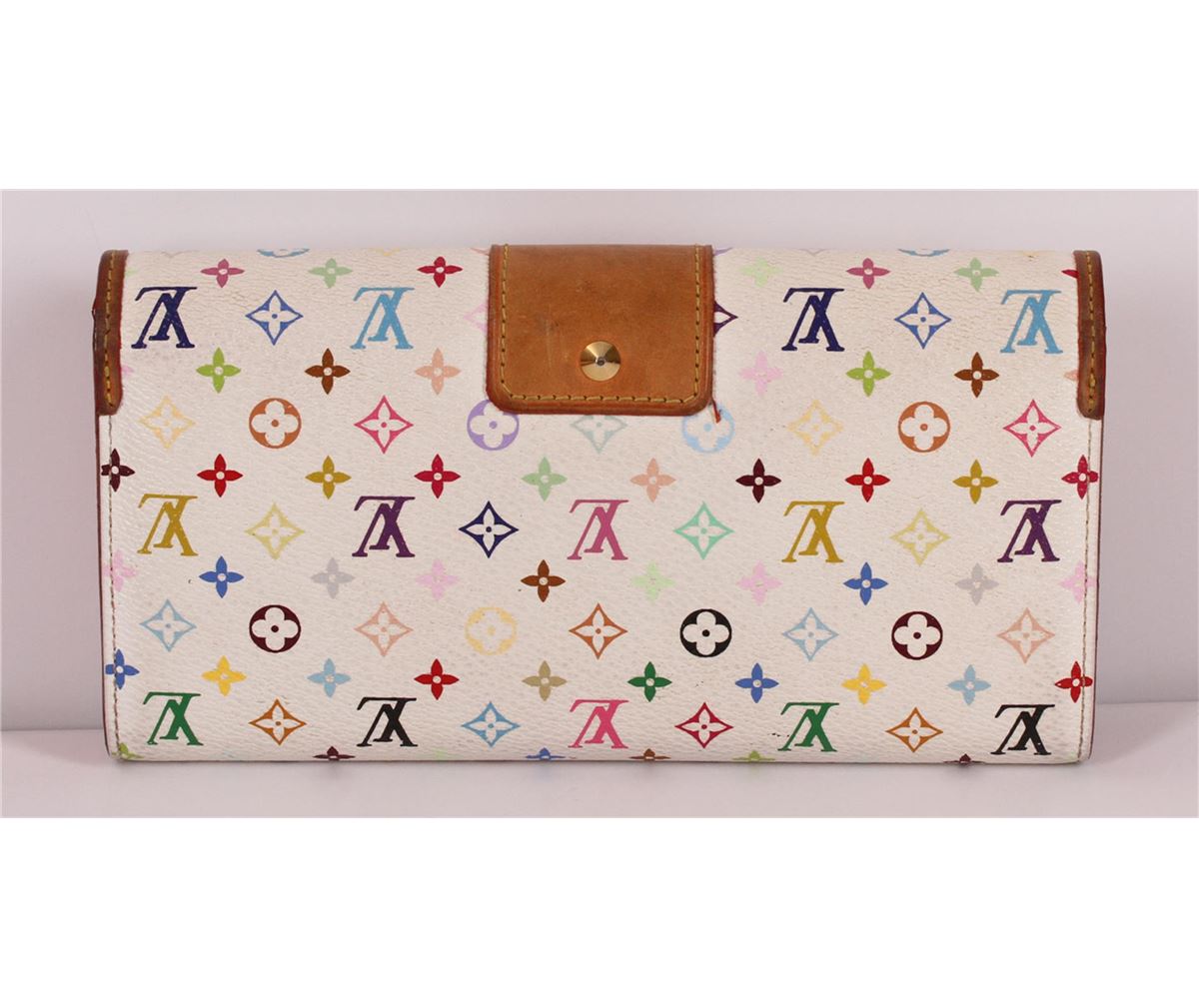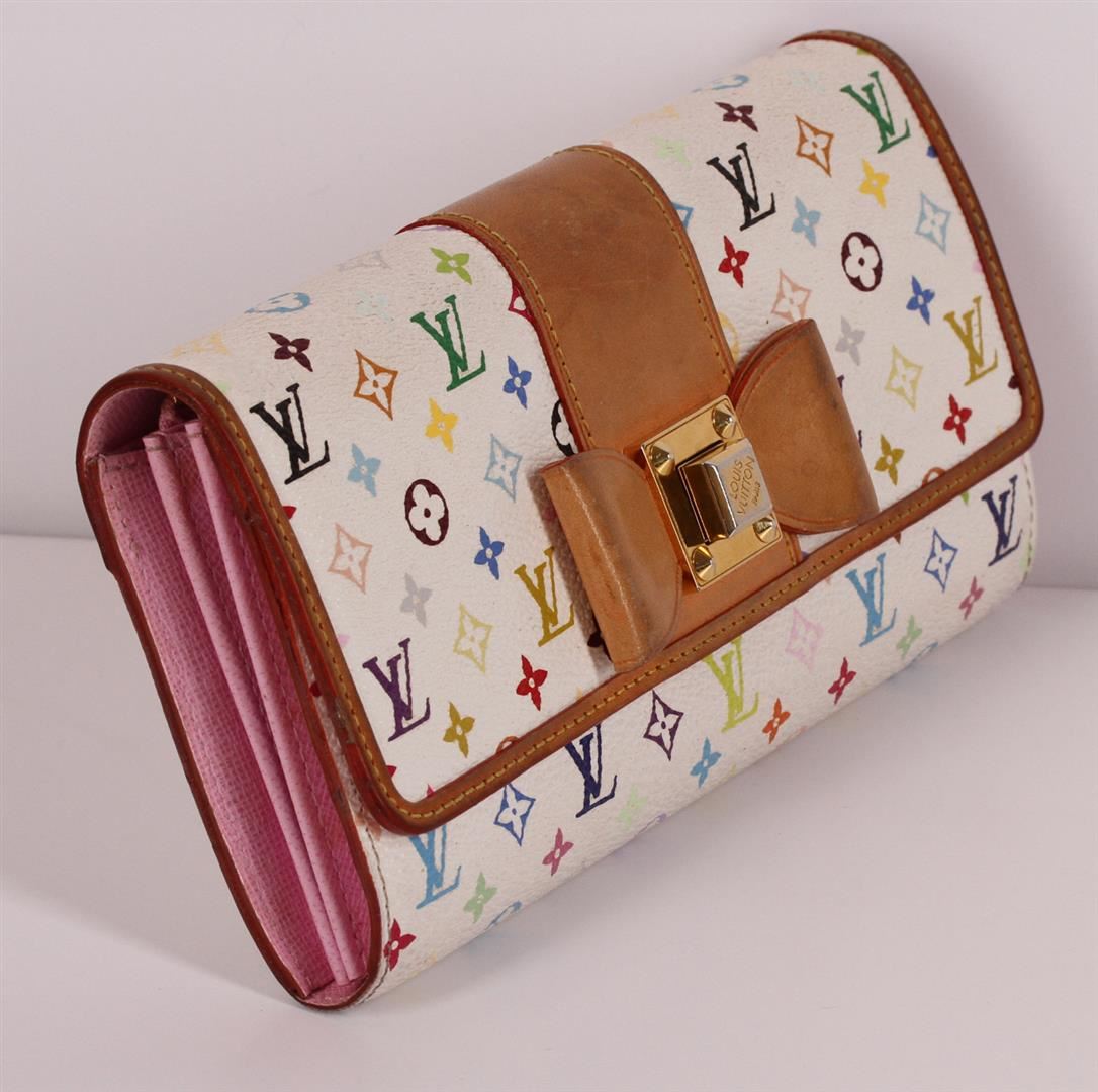 Authentic Louis Vuitton White Multicolor Monogram Bow Sarah Wallet