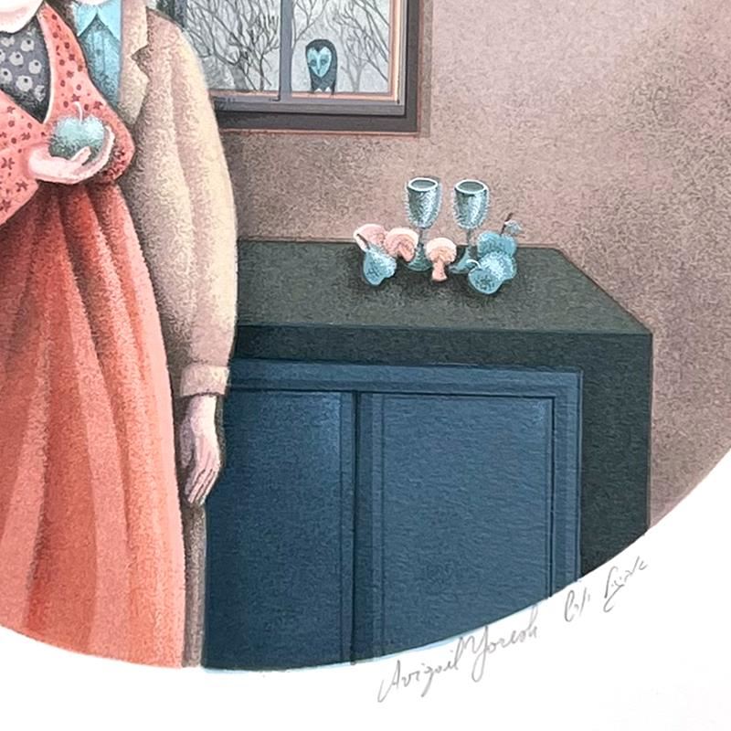 This is a limited edition on paper by Avigail Yoresh. The piece comes hand signed by the artist, numbered, and with a letter of authenticity. Measures approximately 11" x 11".
