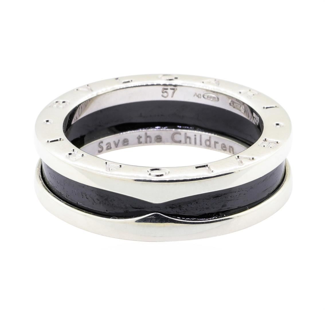 One BVLGARI band featuring: sterling silver weighing 6.7 grams with a black onyx insert. The ring is a size 8.