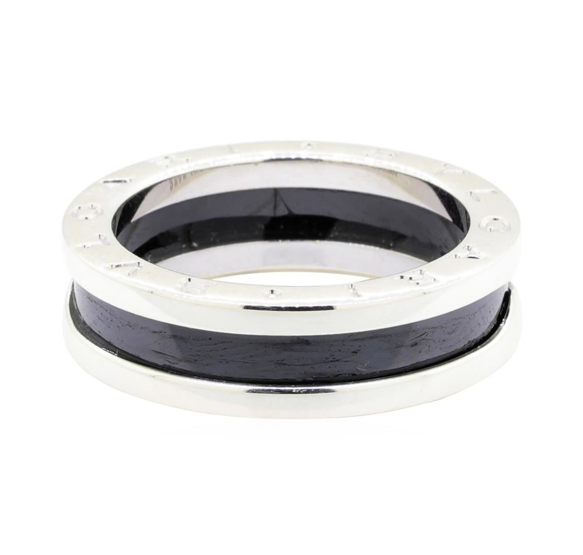 One BVLGARI band featuring: sterling silver weighing 6.7 grams with a black onyx insert. The ring is a size 8.