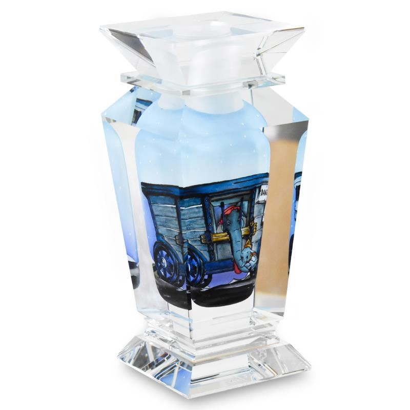 "Baby Mine" is a rare (circa 2007) limited edition glass sculpture based on an original painting by Jim Salvati. This piece is hand cut and shaped out of optical crystal glass. The center of this piece is bored out from the bottom and hand painted from the inside using a tiny specialized brush. This piece is numbered with Disney Certificate of Authenticity. Includes original box. Measures approx. 3" x 7" x 3" (sculpture). Due to the age of this piece there may be minor flaws that are only noticeable upon close inspection. There may also be wear to the box.