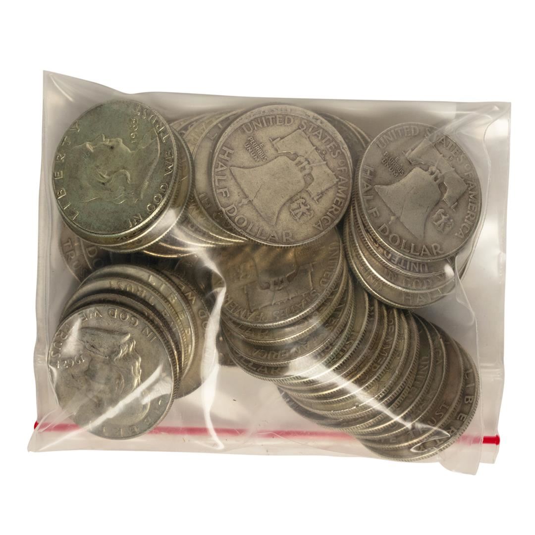 Bag of (50) Silver Franklin Half Dollar Coins - $25 Face Value