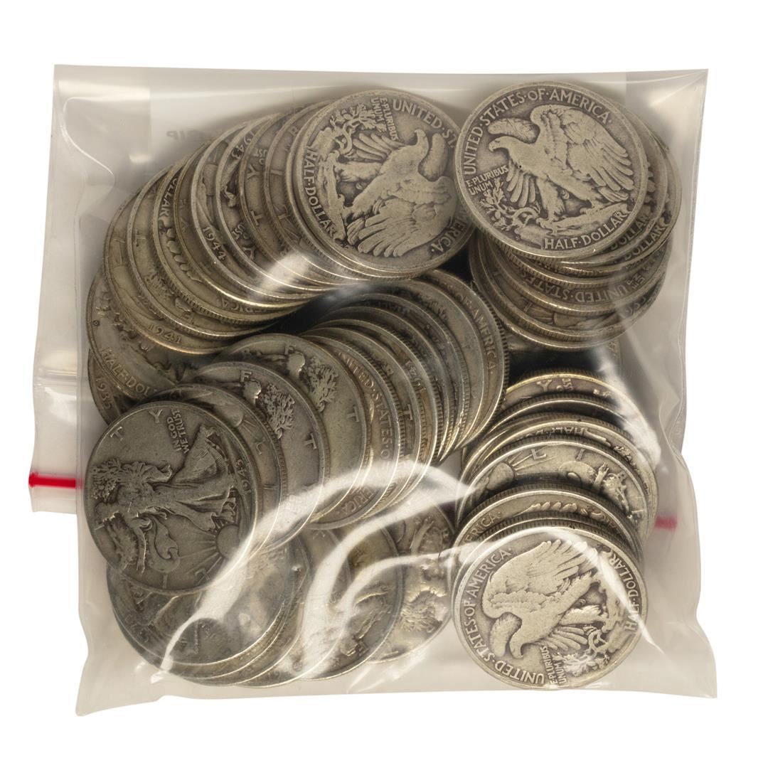 One Bag of (50) Silver Walking Liberty Half Dollar Coins - $25 Face Value.