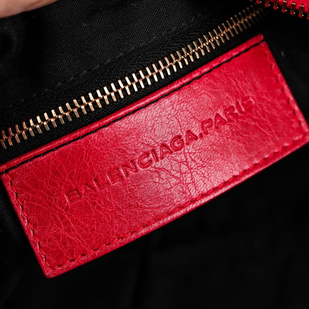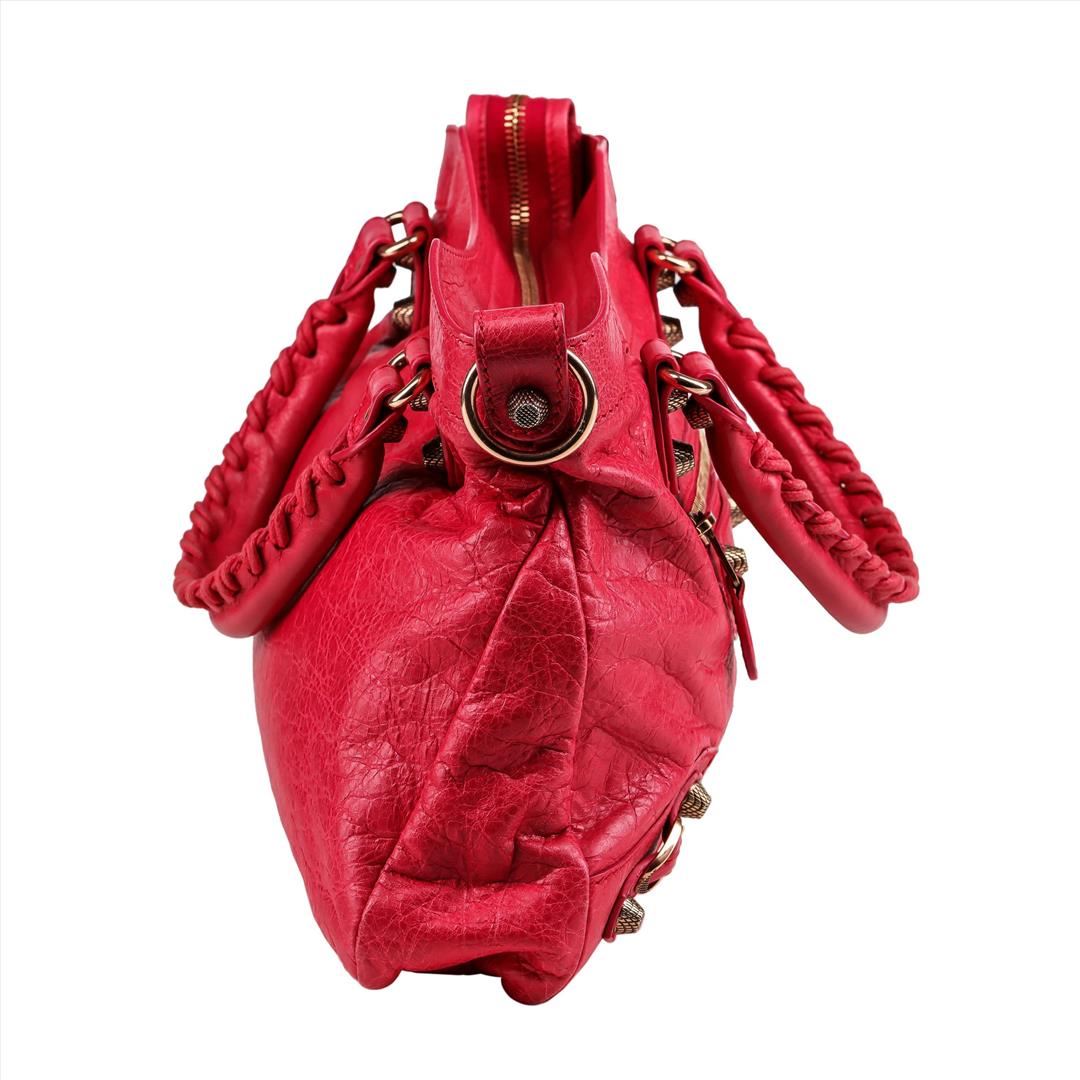 100% authentic Balenciaga classic town bag in fuchsia color. Interior is lined in black textile with two open compartments ideally sized to fit a cell phone, cards and keys and one zippered pocket. Made in Italy from the label's lightly glossed textured-leather. Balenciaga's iconic town bag can be worn on the crook of your arm, as a shoulder bag or crossbody bag. This bag has been used and shows some signs of normal wear. Please see photos. Approximate Measurements: 9.5"H x 13"W x 3"D the removable crossbody strap is 22". Complete with white Balenciaga drawstring dustbag.
