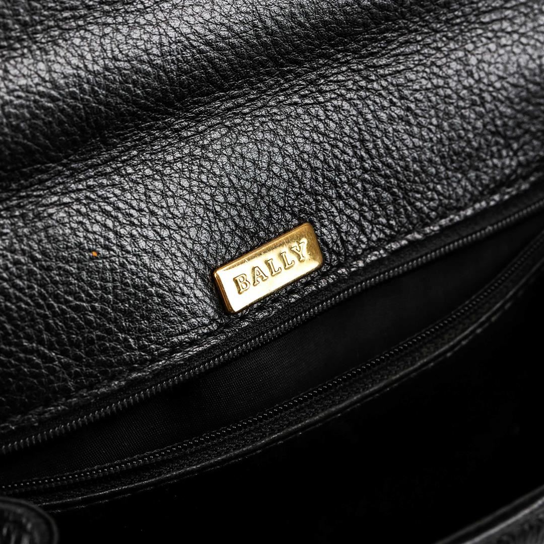 Authentic Black Bally handbag in black calf and crocodile leather with gold-tone hardware. This vintage handbag stands out with its tonal crocodile and calf leather trim, removable shoulder strap, top handle, exterior pocket at back, leather lined interior and single interior zip pocket. Made in Italy. This bag is pre-loved and shows some sign of wear including some scratches on the leather and the interior lining lifting. Please see photos.
