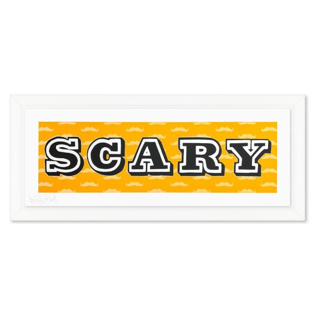 "Scary" is a limited edition screen print on paper by Ben Eine. This piece is numbered and signed by the artist. Comes custom framed with Letter of Authenticity. Measures approx. 36.5" x 17" (frame), 30.5" x 11" (image).
