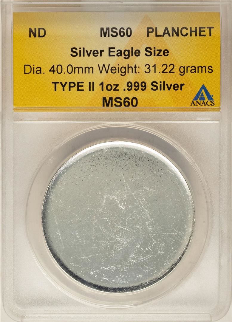 One Blank Planchet American Silver Eagle Coin ANACS MS60. ANACS Certified.