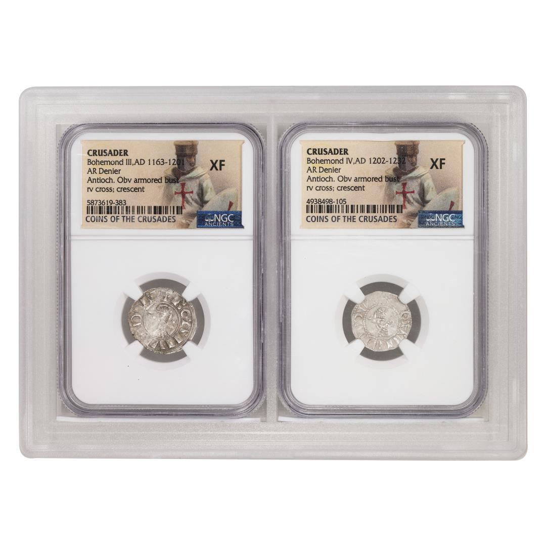 One Bohemond III & IV AR Denier Coins of the Crusades Ancient Set NGC XF. NGC Certified.