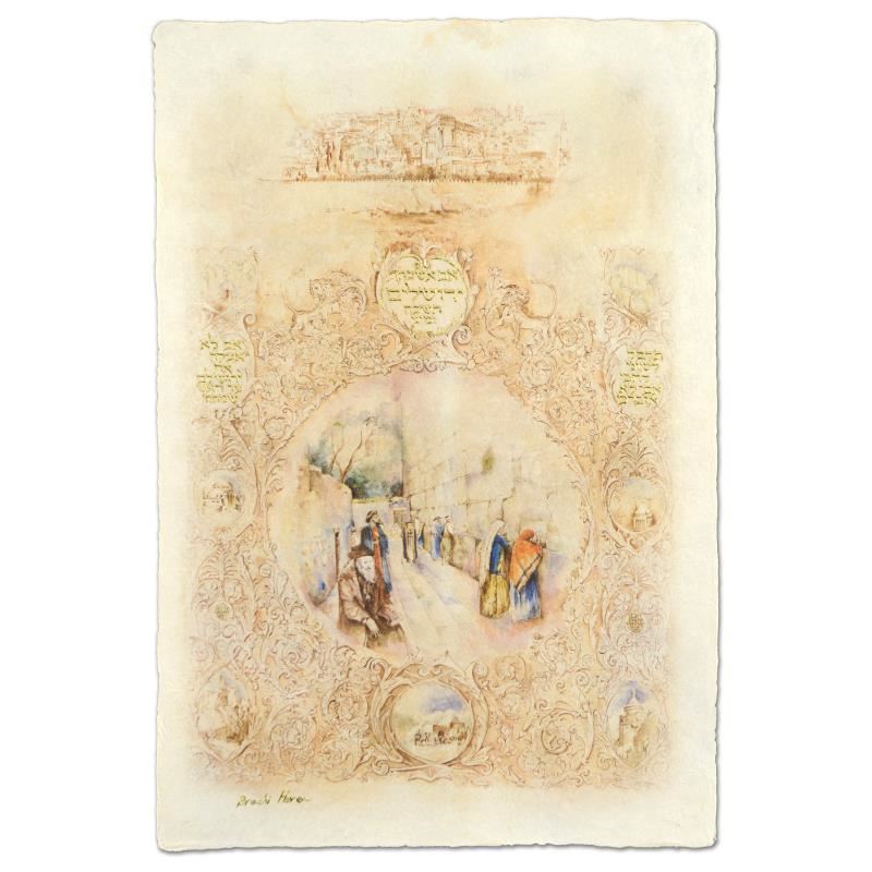"Holy Places" is a mixed media giclee on handmade Indian paper with goldleaf by Brachi Horen, hand signed by the artist! This creation received personal attention by the artist in the form of water coloring and gilding. Includes Certificate of Authenticity! Measures approx. 15.5" x 23" (with border), 14" x 20" (image).